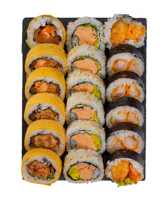Uramaki z łagodną pastą z ryby maślanej (6 szt.) lub Uramaki z pikantną pastą z łososia (6 szt.)